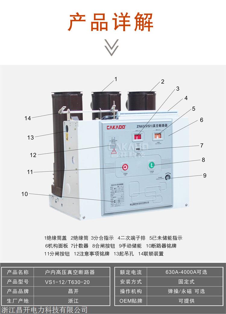 产品详情:VS1-12/630-20室内高压真空断路器