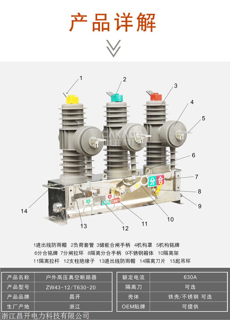 zw43-12/t630-20z:真空断路器;w--室外;43-设计序列号;12----额定电压(KV);t----弹簧操作机构;630---额定电流(a);20——额定短路开断电流(KA);