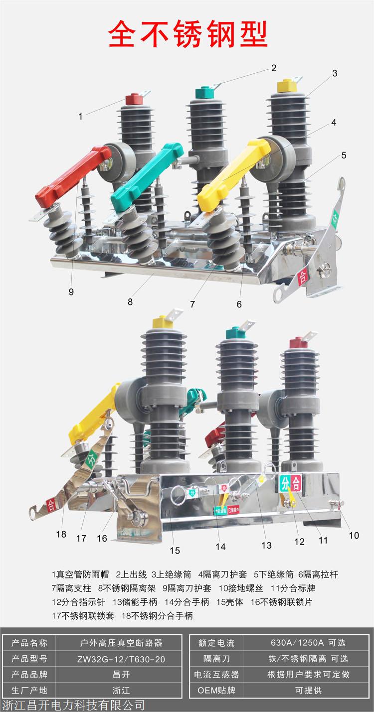 ZW32-12/630-20户外高压断路器(所有不锈钢类型)