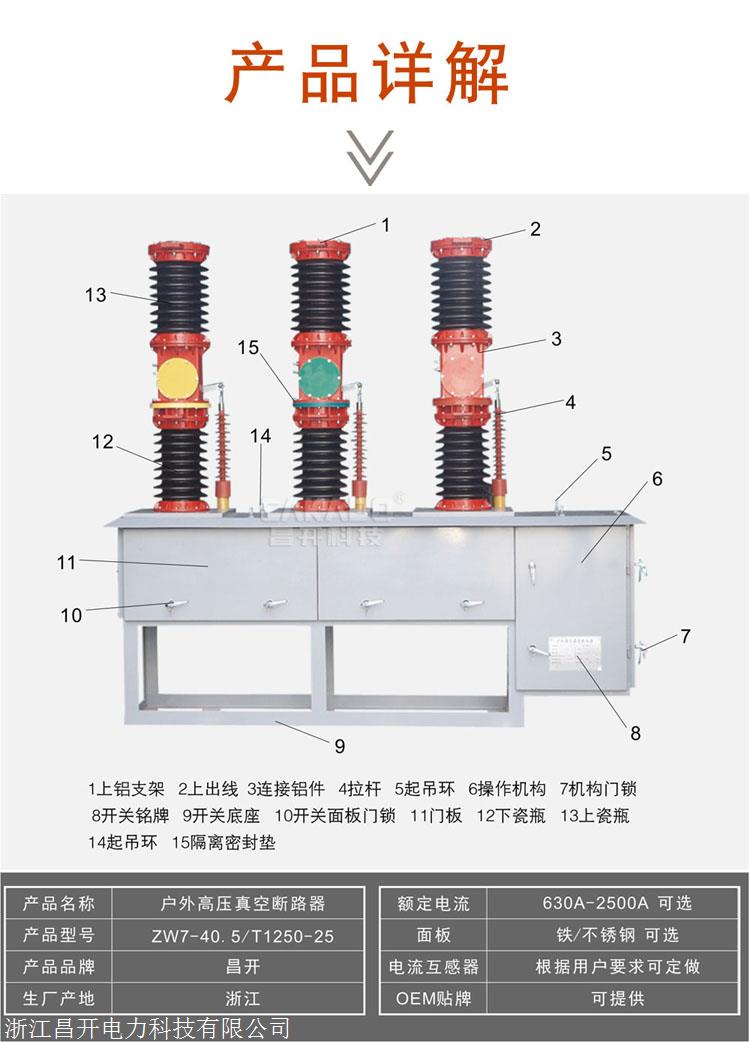 产品详情:ZW7-40.5/630-20户外高压真空断路器