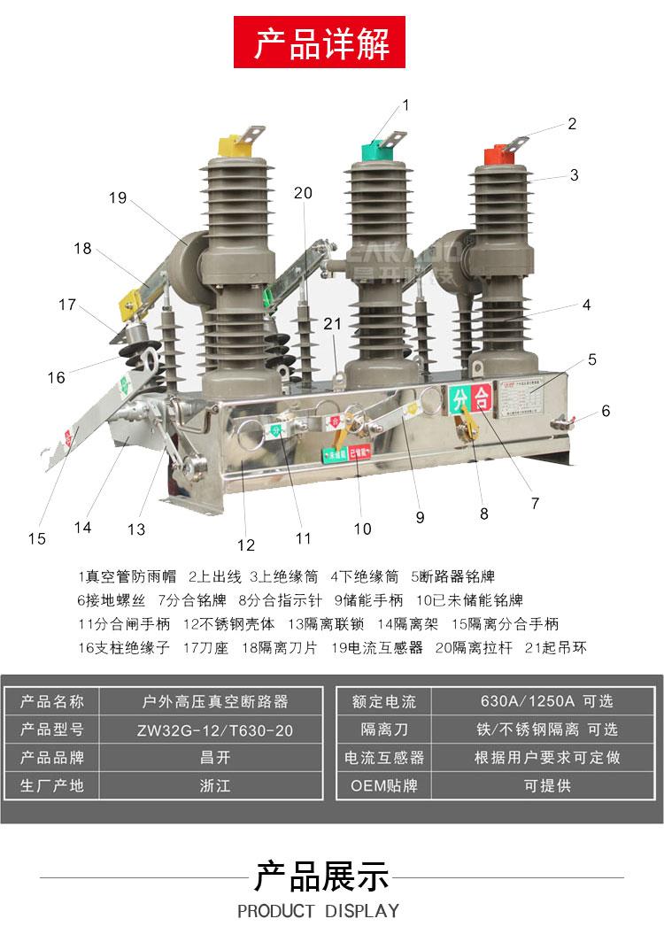 该产品是一种新型的户外高压真空断路器,具有全密封结构,具有不错的密封性能,防潮和抗冷凝性能,特别适用于高温高湿地区。真空隔离灭火采用铜铬触点,纵向磁场结构和陶瓷大爬电间距外壳。具有不燃烧,无爆炸凶险,体积小,重量轻,免维护,采用寿命长的优点。外壳及组件采用国际先进技术“达可罗”开展表面处理,具有很强的耐腐蚀性,有效性提高了产品运转的可靠性,实现了免维护产品。脂环族outdoor特别环氧树脂采用,可提高在湿润条件下的绝缘稳定性,并反抗紫外光辐射引起的腐蚀,并且适用于恶劣的工作条件环境。它可以装设智能启动控制器以组成重合器和分段器,以满足配电网络自动化的要求。